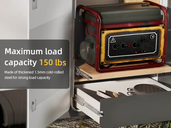 Belastbarkeit: Maximale Belastbarkeit von 150 Pfund und 30 Jahre Lebensdauer: Hergestellt aus 1,5 mm dickem Q235-Stahl und hochwertigem kaltgewalztem Stahl, um sicherzustellen, dass es bei starker Beanspruchung keine Verformung gibt. Der Boden ist mit verschleiß- und stoßfestem ABS-Kunststoff gepolstert, um die Schubladen fest an ihrem Platz zu halten.